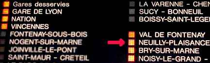 Take RER A in the station, direction MARNE LA VALLEE (DISNEYLAND)(see signboard ), exit at NEUILLY PAISANCE.